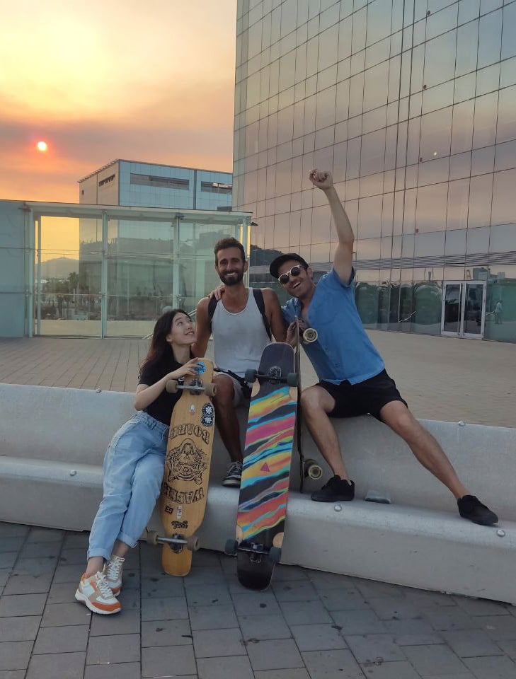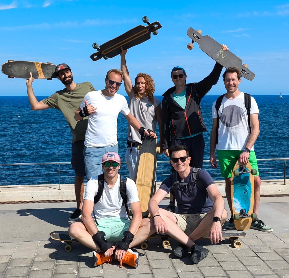 From here we have an effortless cruise until Barceloneta beach. On the way is full of skate spots and nice areas to chill, but up to your skills we can personalize the itinerary changing starting and ending point. For the beginners we teach the basics (how to push, how to brake and the carving).